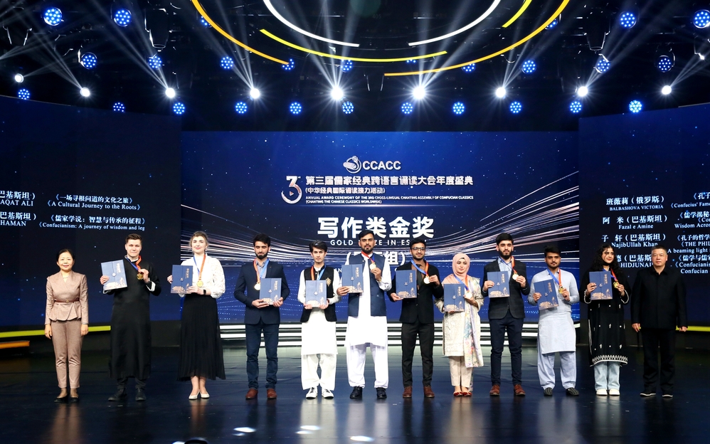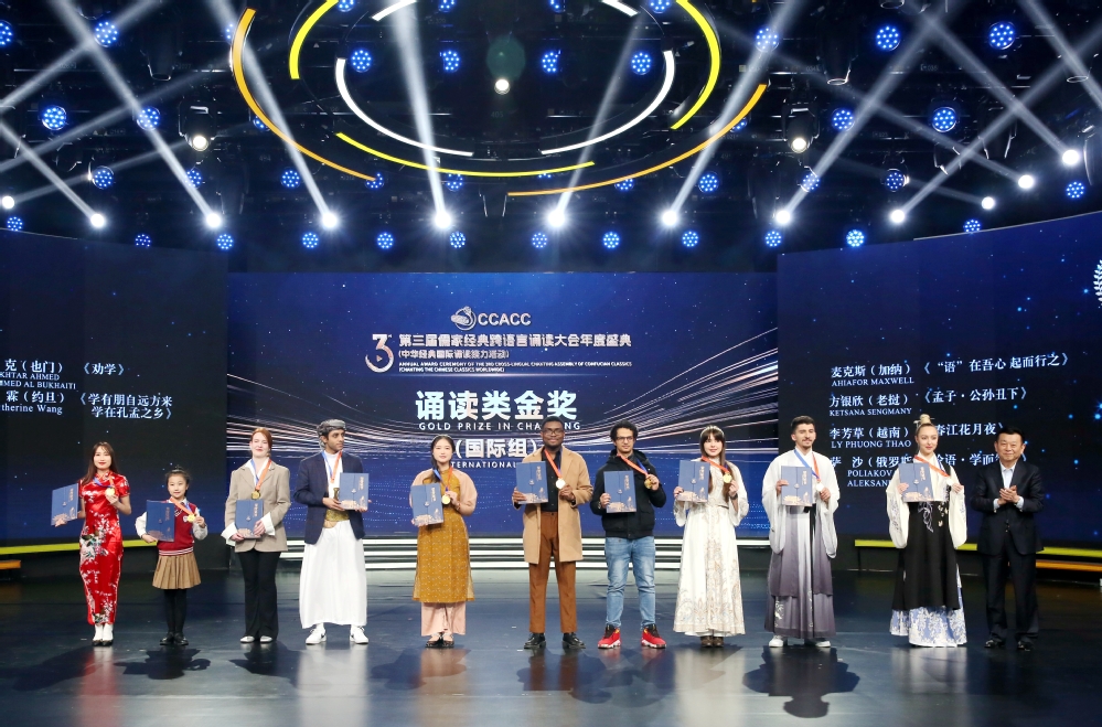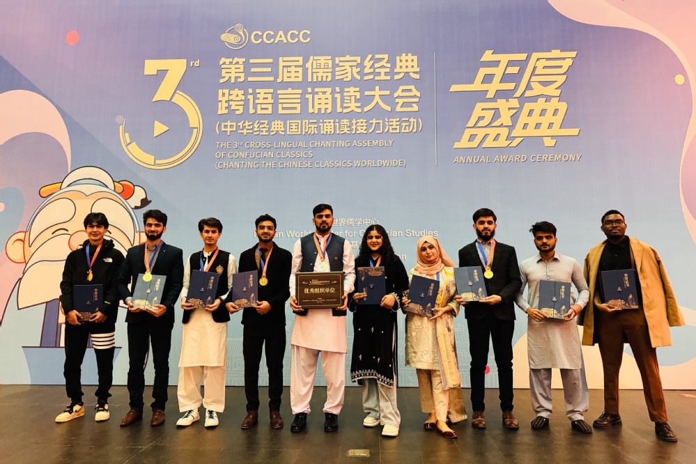 Recently, the annual ceremony of the 3rd Cross-Language Confucian Classics Recitation Contest was successfully held in Jinan. Our university selected 34 works (or pieces) by international students to compete in multiple categories, winning 16 Gold Awards and 14 Silver Awards, achieving a three-peat in Gold Awards. Our university was awarded the Outstanding Organization Award.