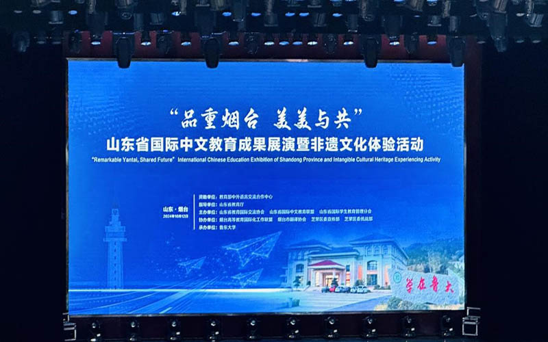 On October 12, 30 international student representatives from our university were invited to participate in the 2024 Shandong International Chinese Education Achievement Exhibition and Intangible Cultural Heritage Experience Activity titled Savoring Yantai’s Excellence, Embracing Shared Beauty. The event was guided by the Shandong Provincial Department of Education, organized by the Shandong Education Association for International Exchange, the International Chinese Education Alliance, and the International Student Education Management Branch, with support from the Yantai Higher Education Internationalization Alliance, the Yantai Translators Association, and hosted by Ludong University. Lu Tian, Deputy Director of the University’s Office of International Cooperation and Exchange, Liu Zhiyong, Deputy Party Chief of the General Branch Committee, and all teachers from the International Student Management Office attended the event.