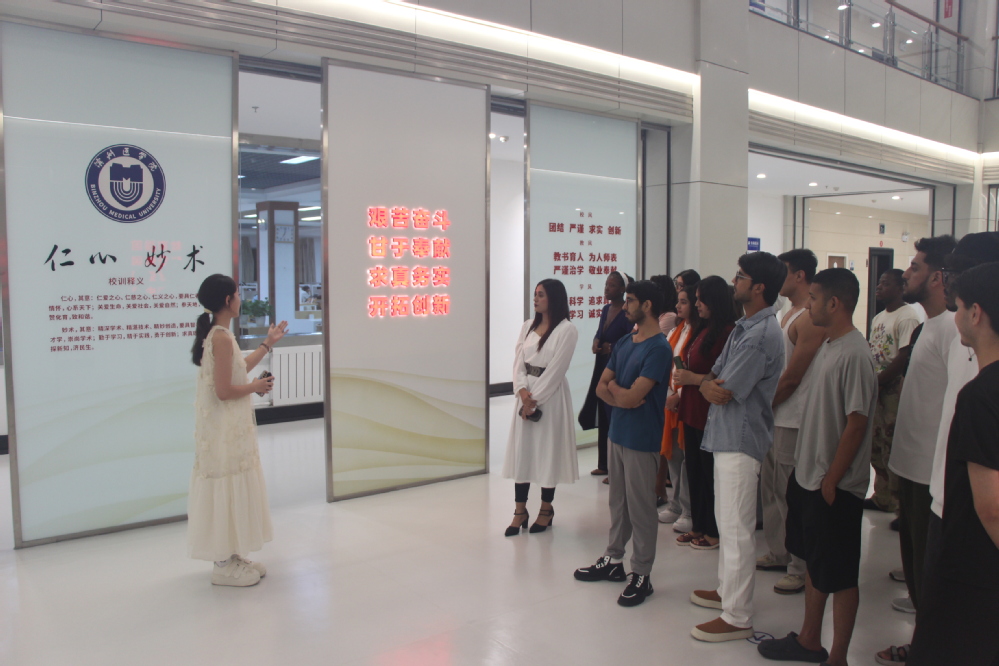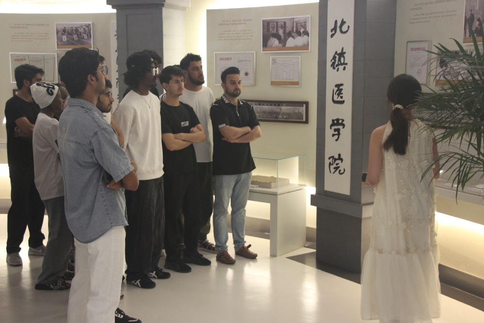 Inside the university history museum, the docent provided a detailed introduction to the development journey of Binzhou Medical University, from Qingdao to BeiZhen and eventually settled in Yantai. From the rich heritage of the National Shandong University Medical College to the independent establishment of Qingdao Medical College and the rapid development of Binzhou Medical University, each step embodies the wisdom and hard work of its people. The international students listened attentively, pausing now and then to examine exhibits, and expressed admiration for the university's achievements in talent cultivation, education and teaching, scientific research innovation and social services.
